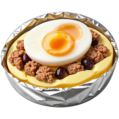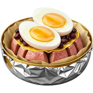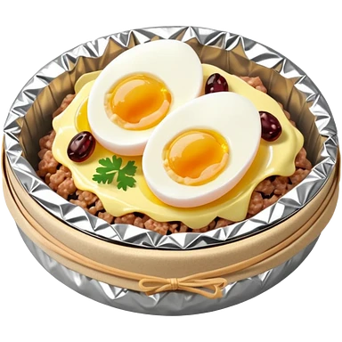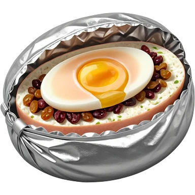steamed ground pork with raisins, sliced boiled egg, wrapped in foil emoji