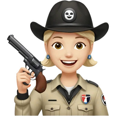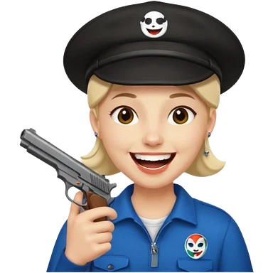 Este emoji ๐ de risa pero con gorro del equipo colo colo y una pistola en la mano emoji