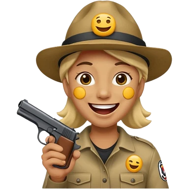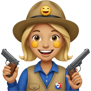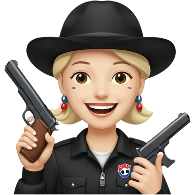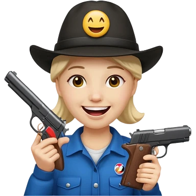 Emoji de risa pero con gorro del equipo colo colo y una pistola en la mano emoji