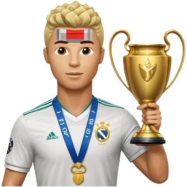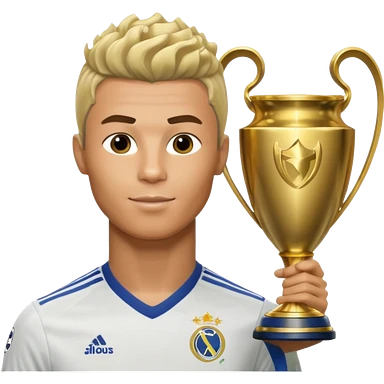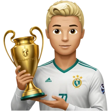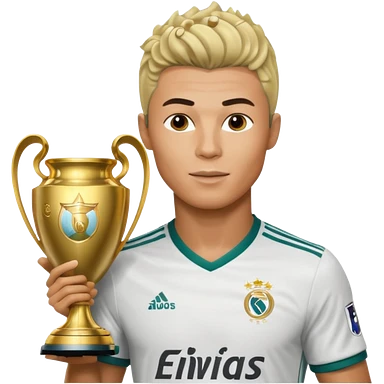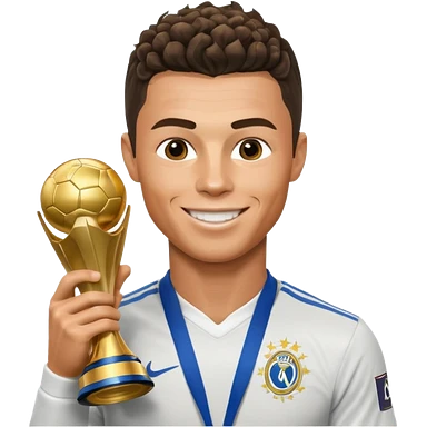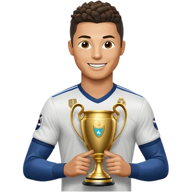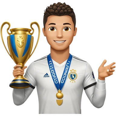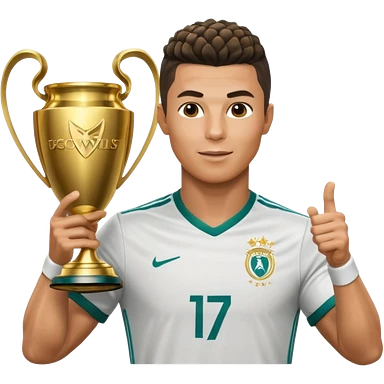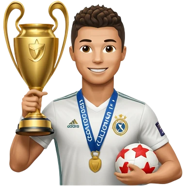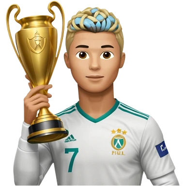 Cristiano Ronaldo holfing the champions league with noodle hair emoji | AI Emoji Generator