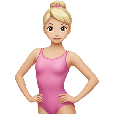 Blonde Women with Bun, Ballet Dancer – sleek blonde bun, pink leotard, graceful posture. emoji