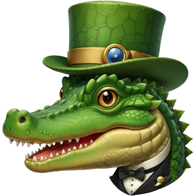 Crocodile with a top hat and monocle emoji | AI Emoji Generator