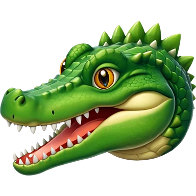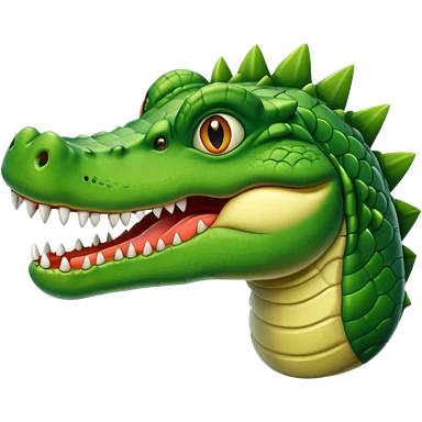 Crocodile laying down with tail over its back with its mouth alittle open looking to the right emoji