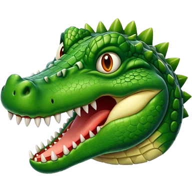 Crocodile laying down with tail over its back with its mouth alittle open emoji