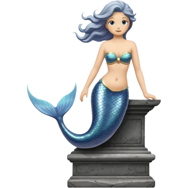 Make a mermaid statue all gray, like of stone and on a pedistal emoji