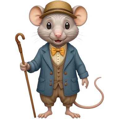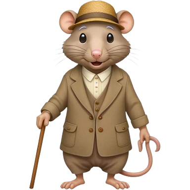 Old rat with wrinkles, happy, with old clothes and a cane emoji