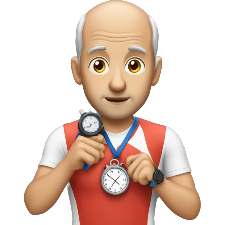 Cross country coach holding a stopwatch who is slightly balding emoji | AI Emoji Generator