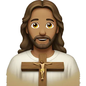 simple Christian cross with Jesus Christ on it, simplified, iconic, yellow face, gentle expression emoji