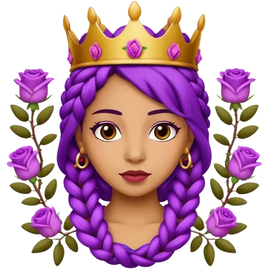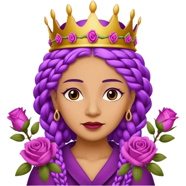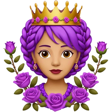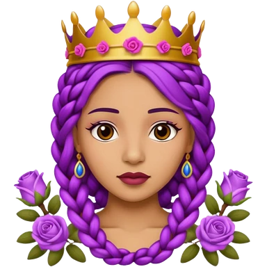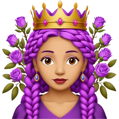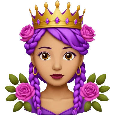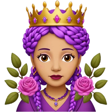 Crown Olive skin older queen with purple braids, brown eyes surrounded by roses emoji