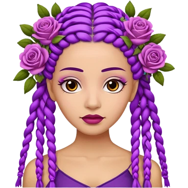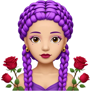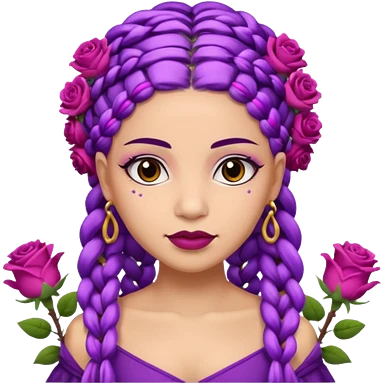 Crown Olive skin queen with purple braids, brown eyes surrounded by roses emoji