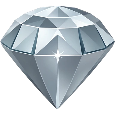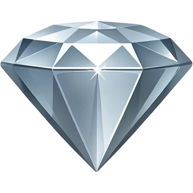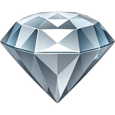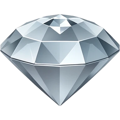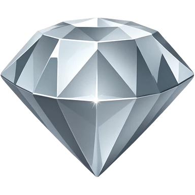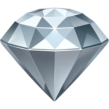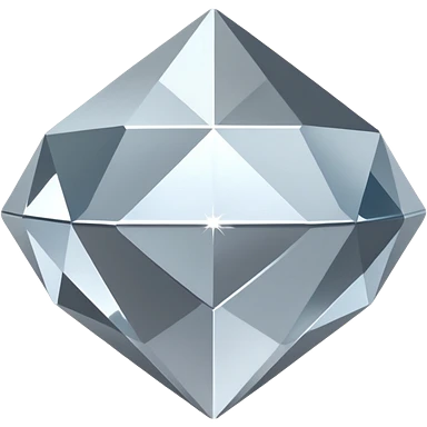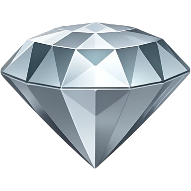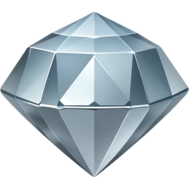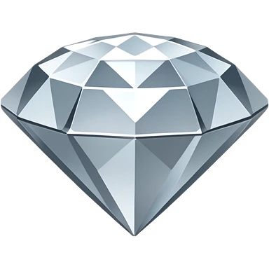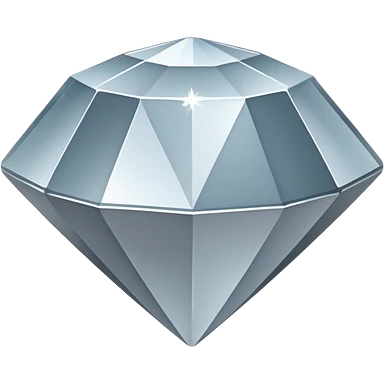 A faceted diamond emoji made of silver chrome, smooth reflective surfaces, soft metallic shine, minimalistic and clean design, iOS emoji style, centered on white background, soft studio lighting emoji