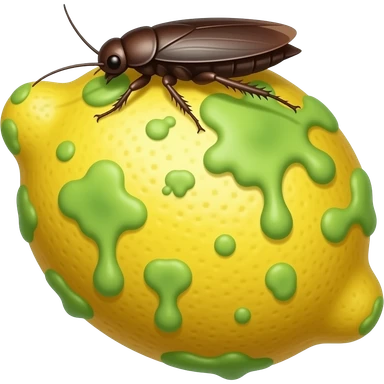 moldy rotten lemon. molds should be green and cartoonish. there will be a cockroach on it. no face emoji