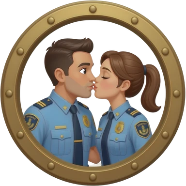 Porthole with male officer and female officer kissing emoji