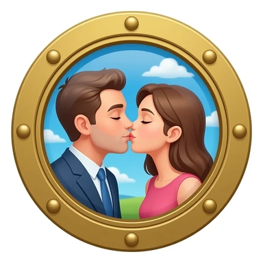 Cruise ship port hole with people kissing emoji