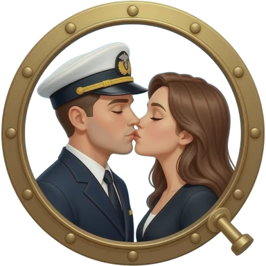 Porthole with male naval officer and female dressed in black kissing emoji