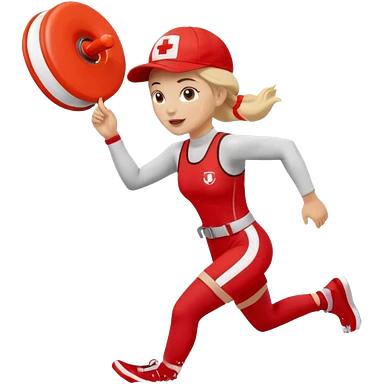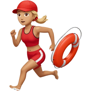 Female lifeguard – red cap, running along shore with rescue buoy emoji