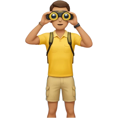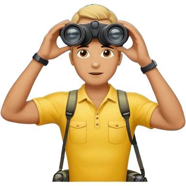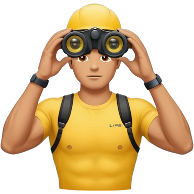 Male lifeguard – yellow shirt, binoculars in hand, scanning the sea emoji