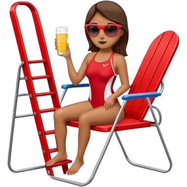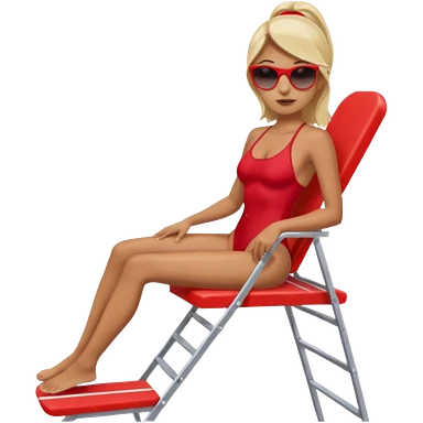 Female lifeguard – red swimsuit, sunglasses, sitting on tall lifeguard chair. emoji