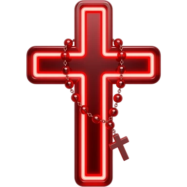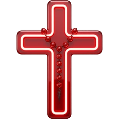 cruz sagrada vermelho vidro neon com rosário vermelho vidro neon emoji