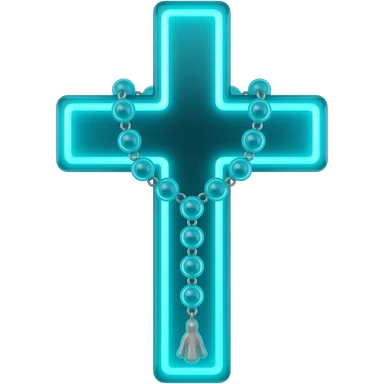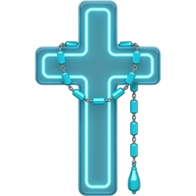 cruz sagrada ciano vidro neon com rosário ciano vidro neon emoji