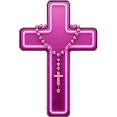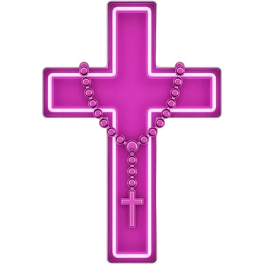 cruz sagrada magenta vidro neon com rosário magenta vidro neon emoji