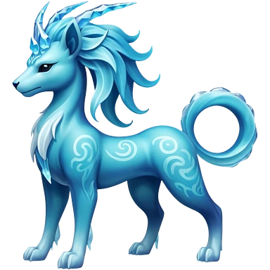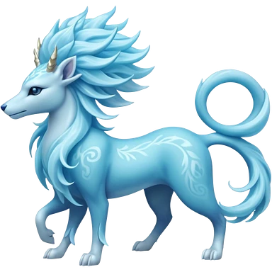 Crystalline Transparent-Cyan Smooth-Fractal Ice-Carved Regal Suicune-Amaura fusion creature (full body) emoji