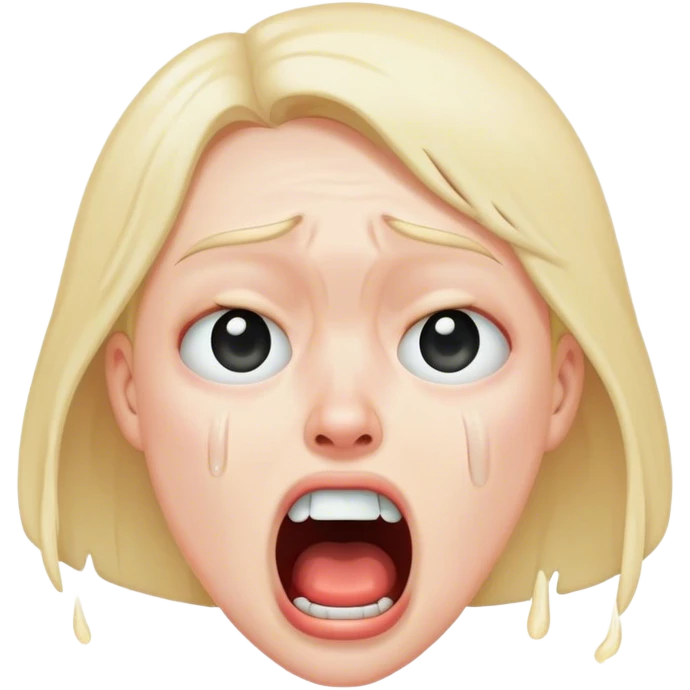 crying face with large tears streaming down, open mouth, green vomit coming out, expression of sadness and discomfort emoji