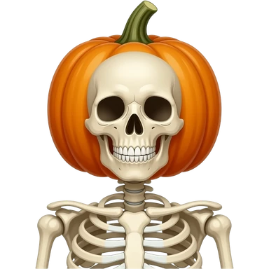 Pregnant skeleton with pumpkin on its head no nose emoji