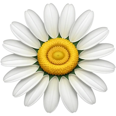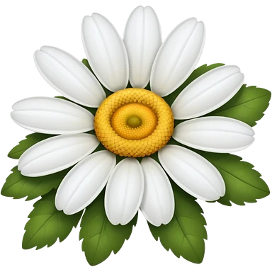 A daisy with ten petals, with green, red and white petals and a yellow centre. emoji
