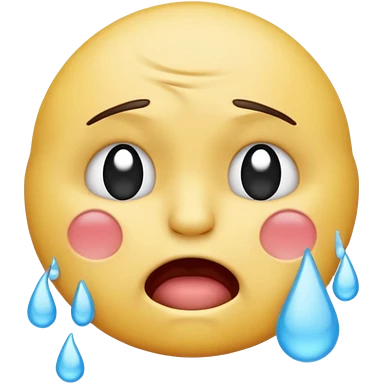 crying emoji with eyes open wide, visible eye bags, yellow emoji, visible teeth, stretched out mouth, blue tears, exaggerated emoji