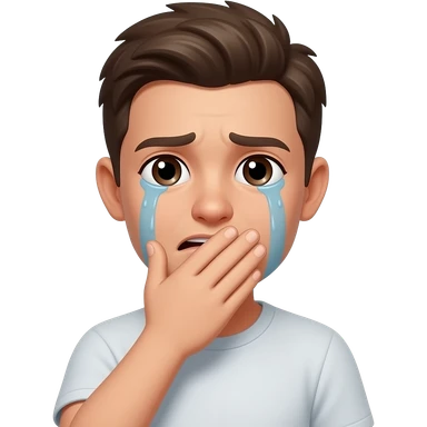 Crying emoji with fist covering mouth like he is saying “ooooh you so tuff boi” emoji