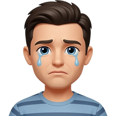 crying emoji with eyes open wide, visible eye bags, 3/4 profile emoji