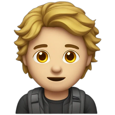 Create an emoji of a young boy student crying. He is wearing a school uniform, including a shirt and pants, and has short hair. The boy is visibly upset, with tears streaming down his face, and he is wiping his eyes with his hand. The background should be simple to emphasize his emotional state, conveying the feeling of being overwhelmed with school stress or personal struggles emoji