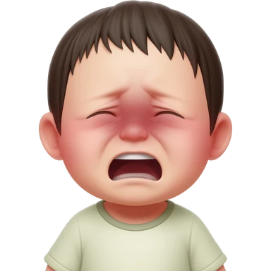 “japanese style Emoji brunette girl long hair with side bangs white top, dewy skin, heavy blush across cheeks and nose bridge, glossy cherry lips, soft eyeliner, teary sparkling eyes emoji