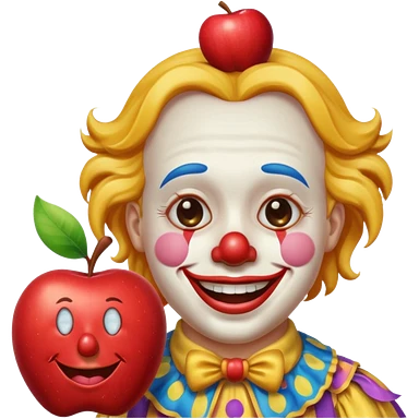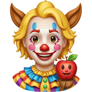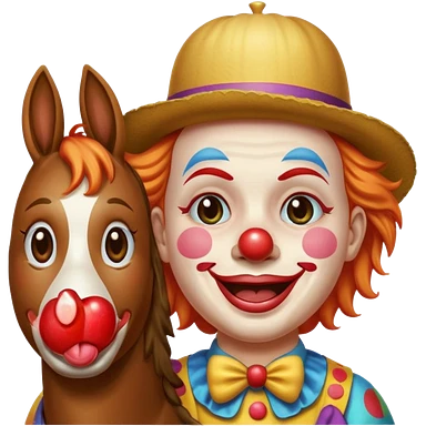 a crying but smiling and showing a peace sign clown face riding a horse, make it native to apple emoji style, the horse and the clown both emoji should match apple's style. emoji