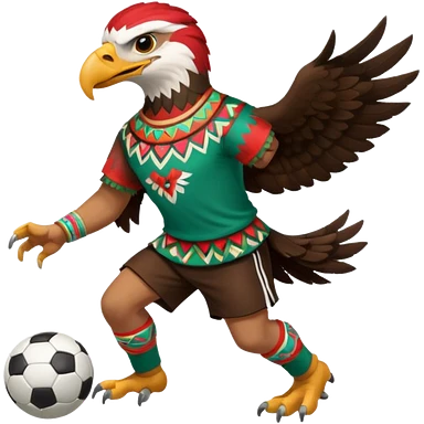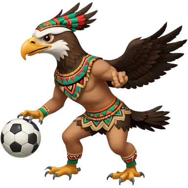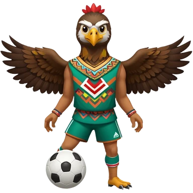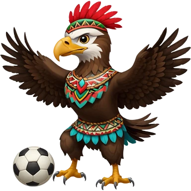 aguila mexicana con vestimenta azteca que juega futbol emoji