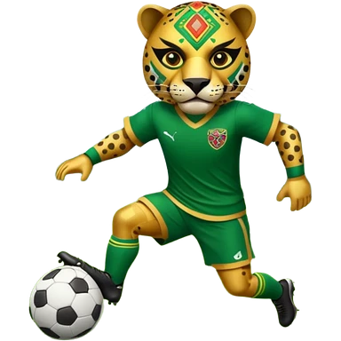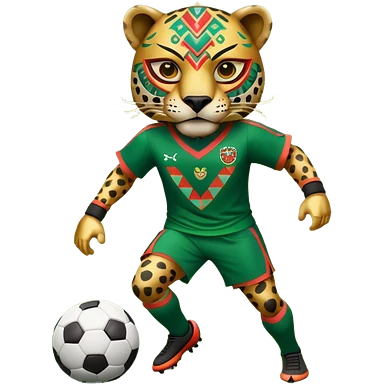 jaguar mexicano con vestimenta azteca que juega futbol emoji