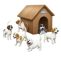 Goals: 1) Isometric view 2) Physically realistic portrayed in a way that would be expected to the average person 3) Avoid anything that could be considered offensive, even 2% --- Now generate an image to represent a list to buy items for a dog. Items include: 1 Kennel,1 bowl, 1 bed, 1 leash, etc emoji