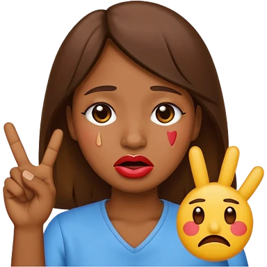 Crying while holding up a peace sign emoji | AI Emoji Generator