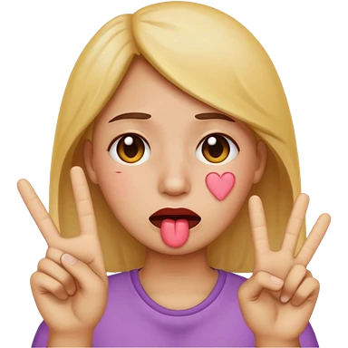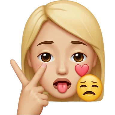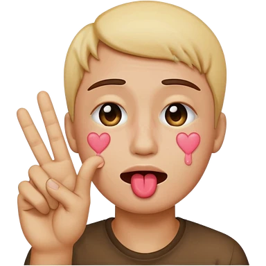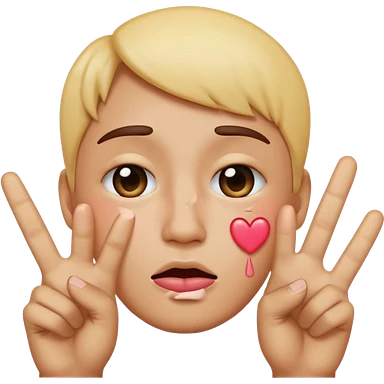 Emoji face crying while doing a kissy face holding up the peace sign emoji