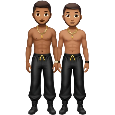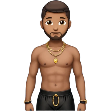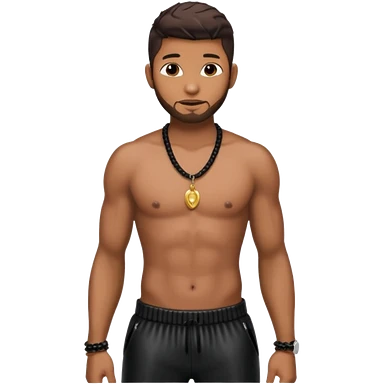 Usher with shirtless with necklace, dark brown hair, latex black harem pants emoji