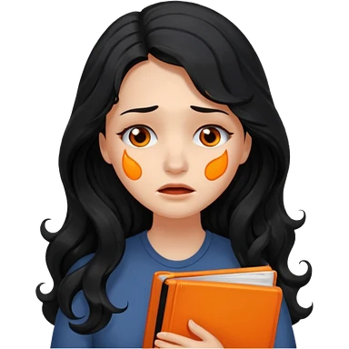 Long Hair Women with orrange Book, Black wavy hair, sad, crying emoji
