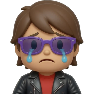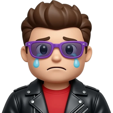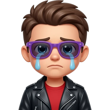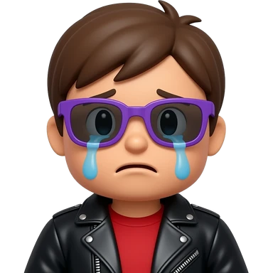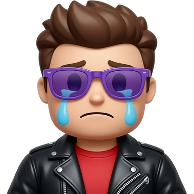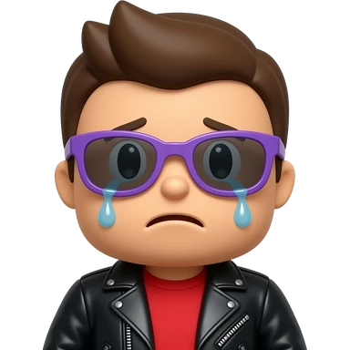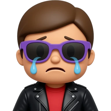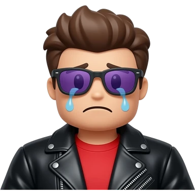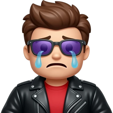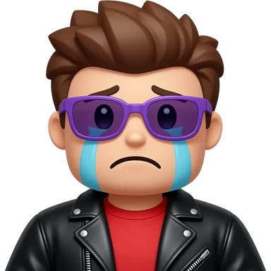Crying Roblox boy avatar emoji, brown hair, purple sunglasses, black leather jacket, red shirt with... emoji