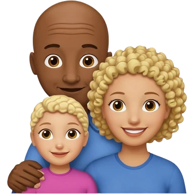 Papá calvo moreno, hija rizada y mamá rubia emoji