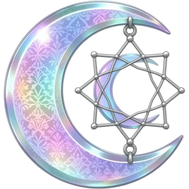 glossy neon iridescent crystal crescent damask moon dreamcatcher emoji