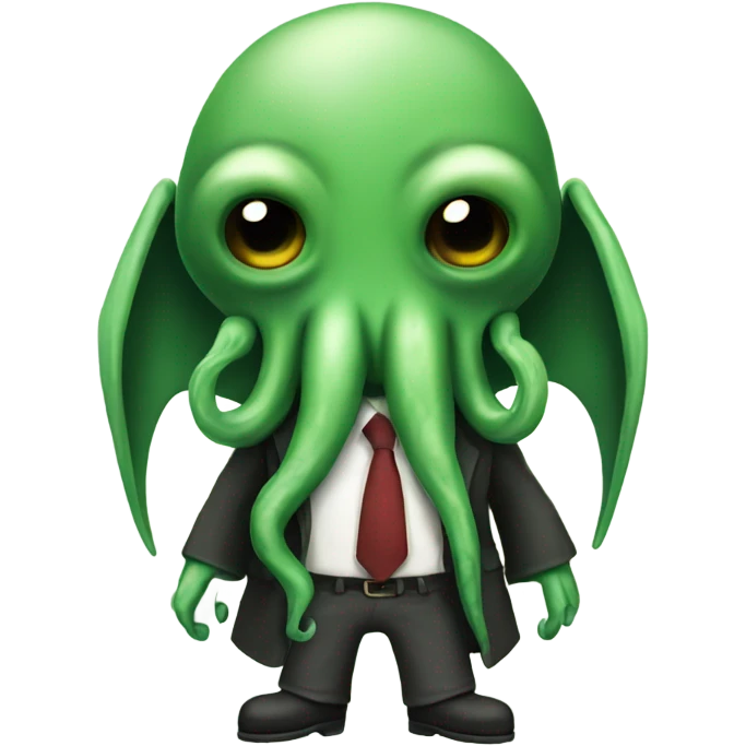 deep green Cthulhu with purple bat wings and purple gradient tentacles. Yellow angry eyes. yellow suckers on tentacles. dramatic ominous shading. two saber-teeth emoji