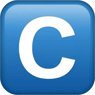 Letra C en color blanco en un cuadro de color azul emoji