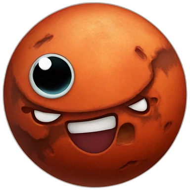 orange planet with a cartoon smirking with big courageous eyes emoji