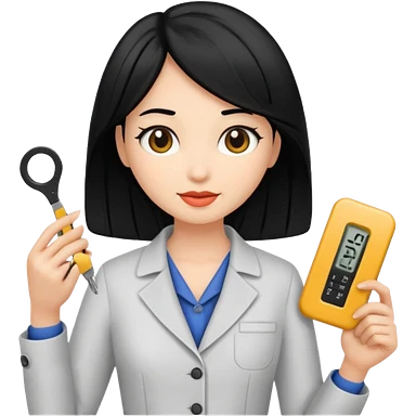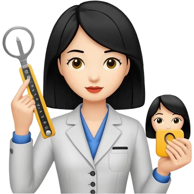 tailor woman holding measure black hair emoji