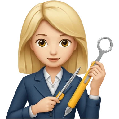 tailor woman holding measure blonde hair emoji